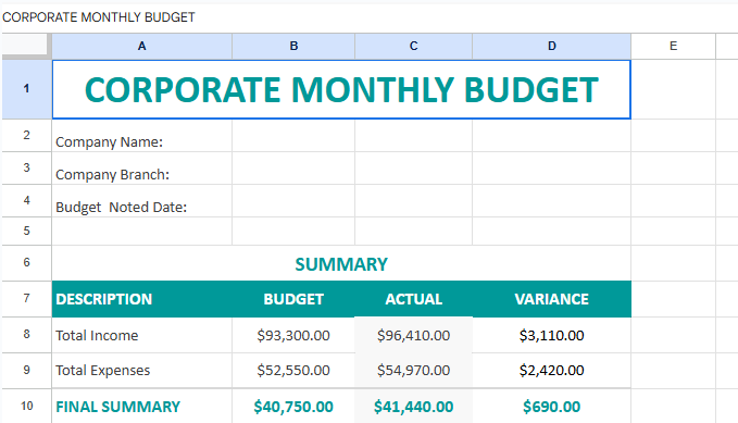 كما أن المنتج الرقمي Corporate monthly budget template A4.xlsx يعكس الدور الحيوي للقوالب الرقمية في تعزيز التنظيم والدقة، إذ يوفر إطارًا مرتبًا وواضحًا للتعامل مع البيانات المالية ويسهم في تبسيط عمليات التخطيط المالي وإدارة الموارد بكفاءة عالية. هذه الخصائص تجعل منه أداة رقمية فعّالة تساعد على تحسين الإنتاجية واتخاذ القرارات المالية بشكل أكثر ذكاءً وفعالية.