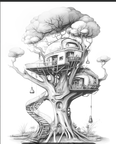 أطلق العنان لخيالك مع هذه المجموعة المميزة من صفحات التلوين المستقبلية لبيوت الأشجار! ????????
